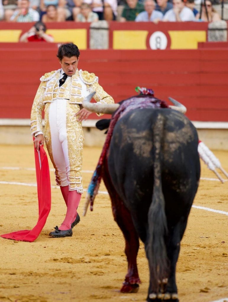 Su segundo, quinto de la tarde, hizo su aparición con tanto brío que fue a estrellarse frente al burladero de toriles, siendo apuntillado. El sobrero de Escribano Martín, también de gran trapío apretó en varas, pero todo quedó en espejismo. Pocas posibilidades ofreció al torero, que optó por cortar por la brevedad ante el nulo juego del astado. Buena estocada y sentida ovación.