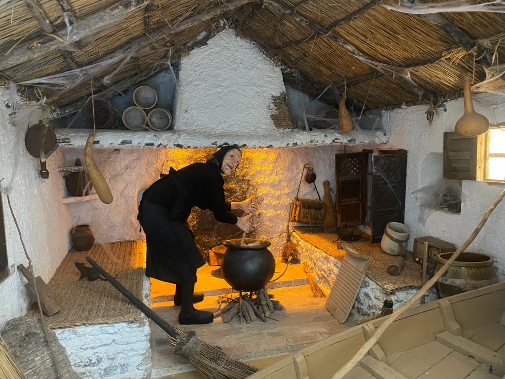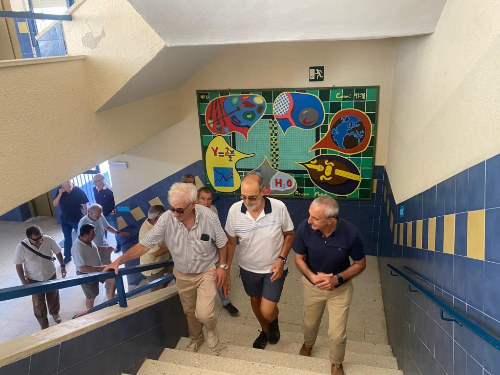 Visita al ITEM, Instituto Técnico de Enseñanza Media, así denominado in illo tempore. Allí surgieron de nuevo anécdotas y recuerdos, desde las privilegiadas memorias de algunos de los presentes, con detalle preciso en sus comentarios al pasar por las diversas dependencias que en otro tiempo fueron nuestro Instituto. Recuerdos de cuadros de honor, alternados con recuerdos de alguna que otra picia. Y susto, susto grande al encontrarnos con la bruja y su caldero, entre ratas y telarañas, en lo que en nuestra época fue salón de actos y hoy alberga al Centro del Agua. Qué susto nos dio la “Bruja Avería” al toparnos con ella sin esperarla…