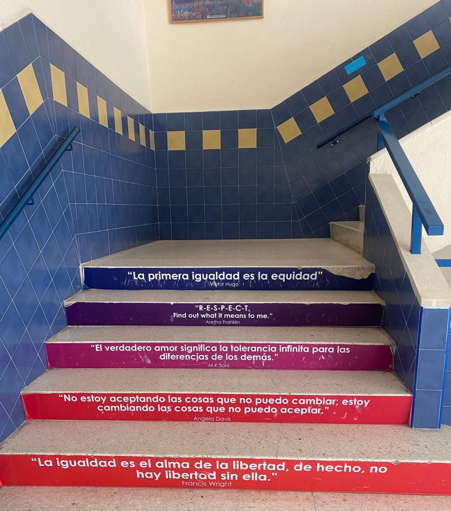 No faltó con anterioridad detalle floral para Edith Bedin Oviedo, directora actual del Instituto que se prestó como buena anfitriona para mostrarnos y explicarnos la actual instalación educativa y sus reformas posteriores. Gracias Edith.