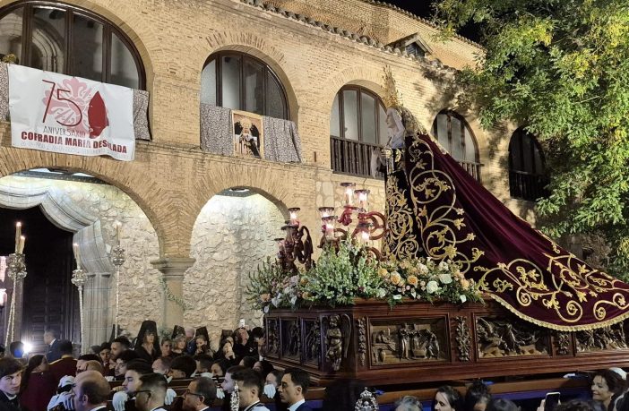 Daimiel Noticias. – Jornada intensa la de este sábado para la Cofradía de María Desolada (‘Los Capuchinos’), que con motivo de su 75 aniversario celebró una procesión extraordinaria que quedará para la historia de Daimiel. El acto congregó a una multitud de vecinos y visitantes que no quisieron perder la oportunidad de contemplar a la Imagen titular portada a hombros, por primera vez, en una jornada cargada de emoción y solemnidad.