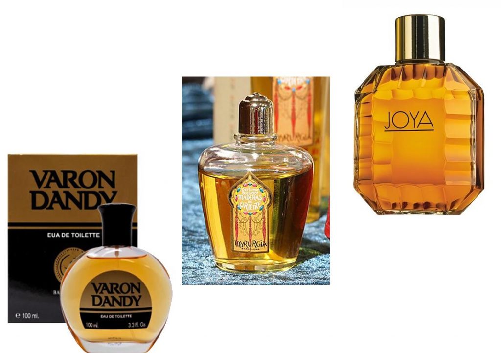Luego estaba la sección de colonias, y que como por entonces no había estantes de plástico sino baldas de madera, estas crujían ligeramente, cuando el dependiente dejaba allí encima los grandes frascos de cristal. Entre ellas estaban las colonias clásicas, como la Mirurgia, Maja, Joya, Maderas de Oriente, Varón Dandy o aquellas otras fragancias que se vendían a granel y nos llevábamos servidas en el flus-flus de turno. El vendedor te preguntaba: “La de siempre, ¿verdad? La que es un poquito más fresca, como a ti te gusta…” entonces, con mucho cuidado, te llenaban el botecillo muy despacio para así, no derramar ni una gota.