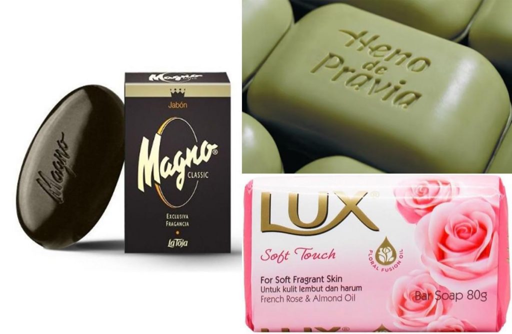 Tampoco nos podemos olvidar de esos jabones que todos, a lo largo de los años, alguna vez hemos usado, entre ellos: La Toja, Lux o aquel Heno de Pravia con su aroma inconfundible, suave pero profundo.