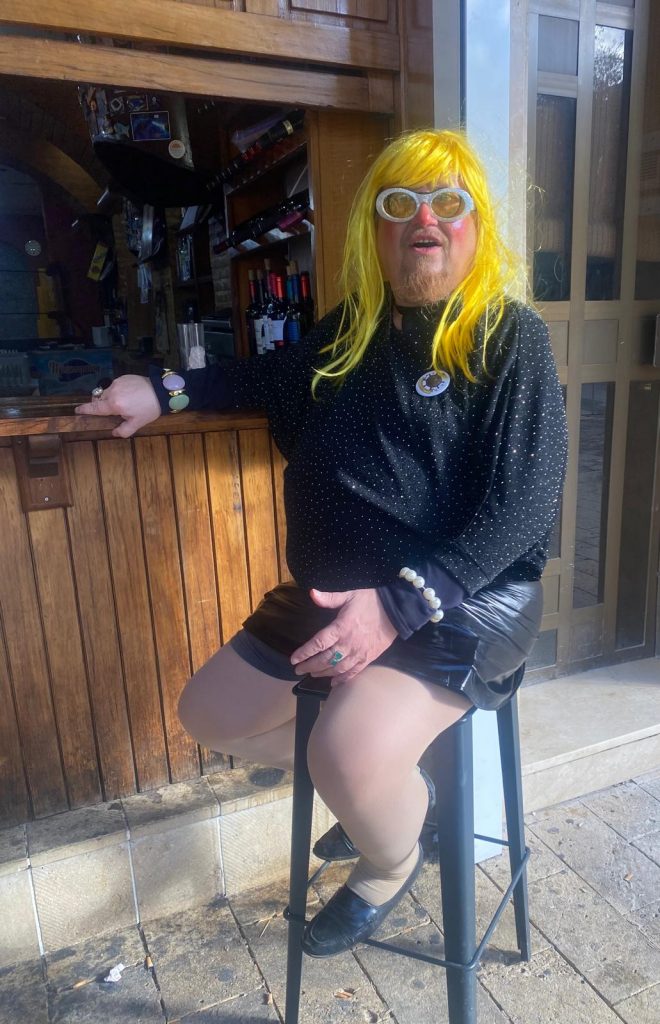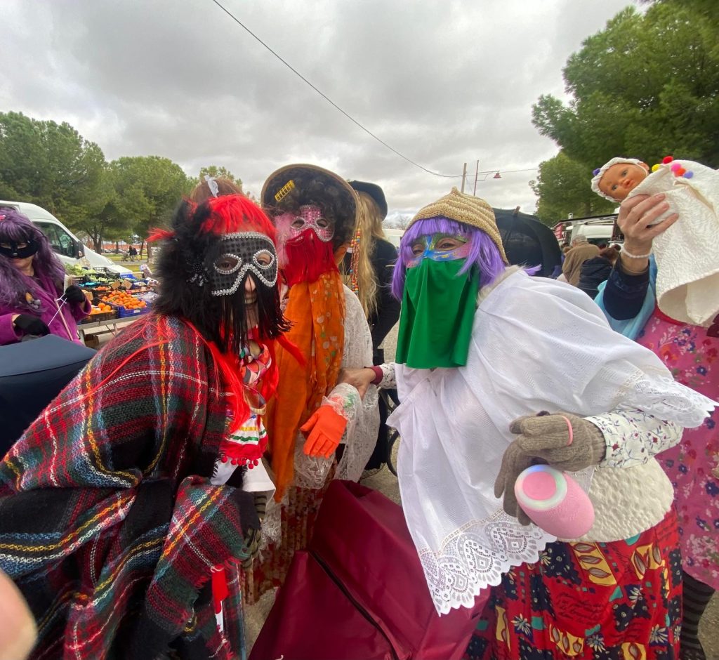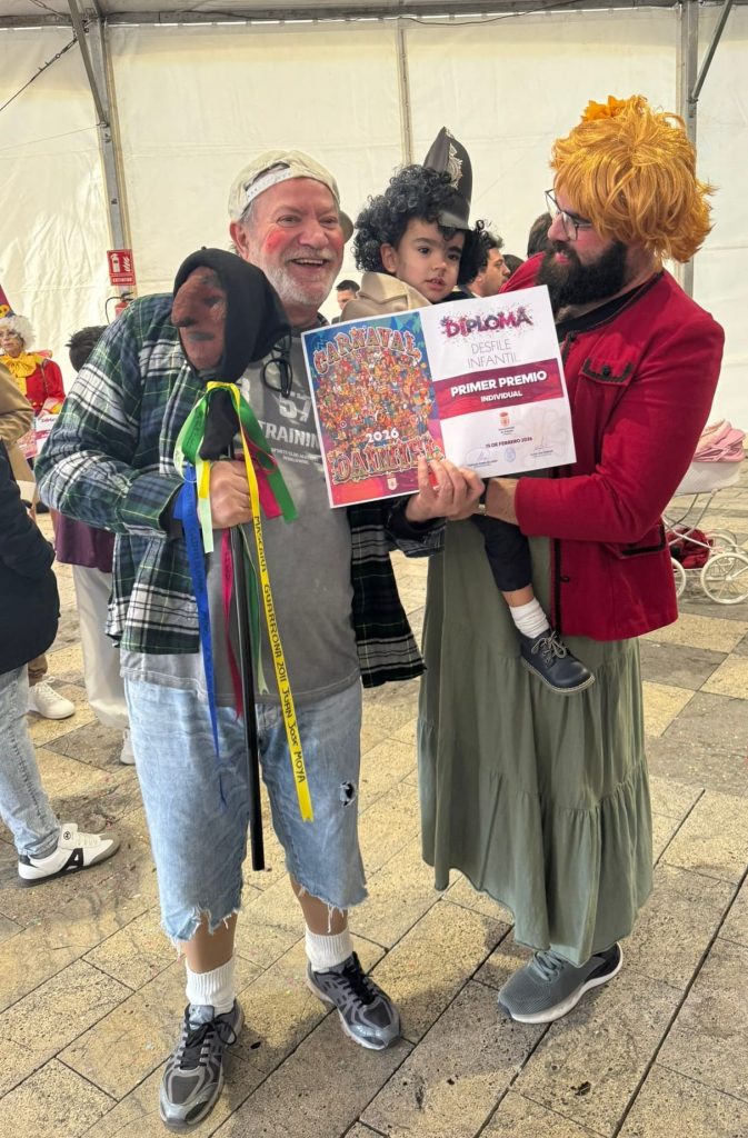 Y como el movimiento se demuestra andando, pues de aquí para allá deambulaban las máscaras, algunas en solitario, otras agrupadas y todas desde el disfraz hilarante, estrambótico o surrealista, con el “a que no me conoces” por delante, aunque algunos “carnavalearon” a “jeta” descubierta con maquillaje liviano que no ocultaba rasgos reconocibles de personajes clásicos del disfraz, daimieleños artífices todos ellos de este ambiente, todos ellos auténticos líderes generosos y desinteresados, que nos conducen un año más por el camino del briboneo, pero desde el positivismo, el optimismo, bondad, valentía, desinhibición…, y ganas de pasarlo genial, de vicio, de miedo, increíble, bomba… de puta madre hablando en plata.