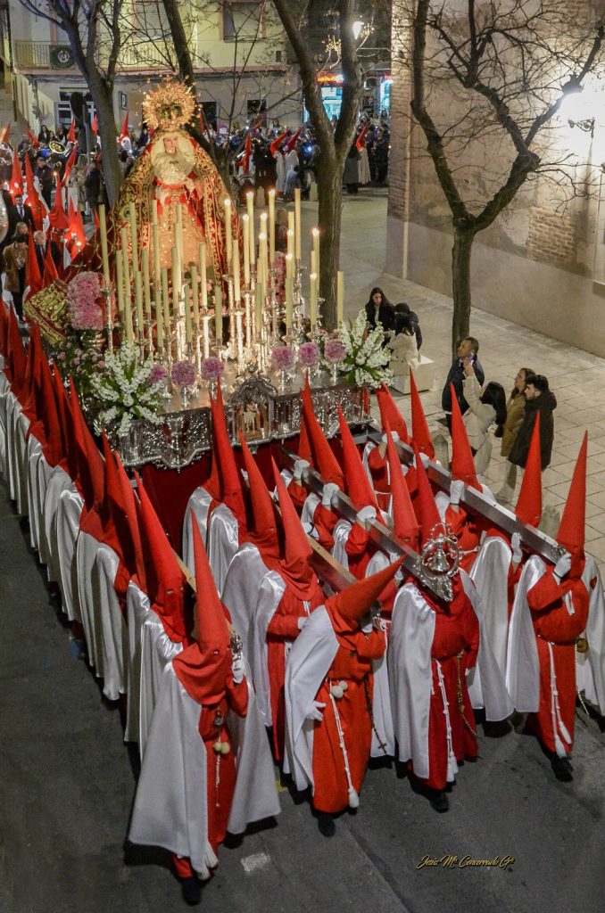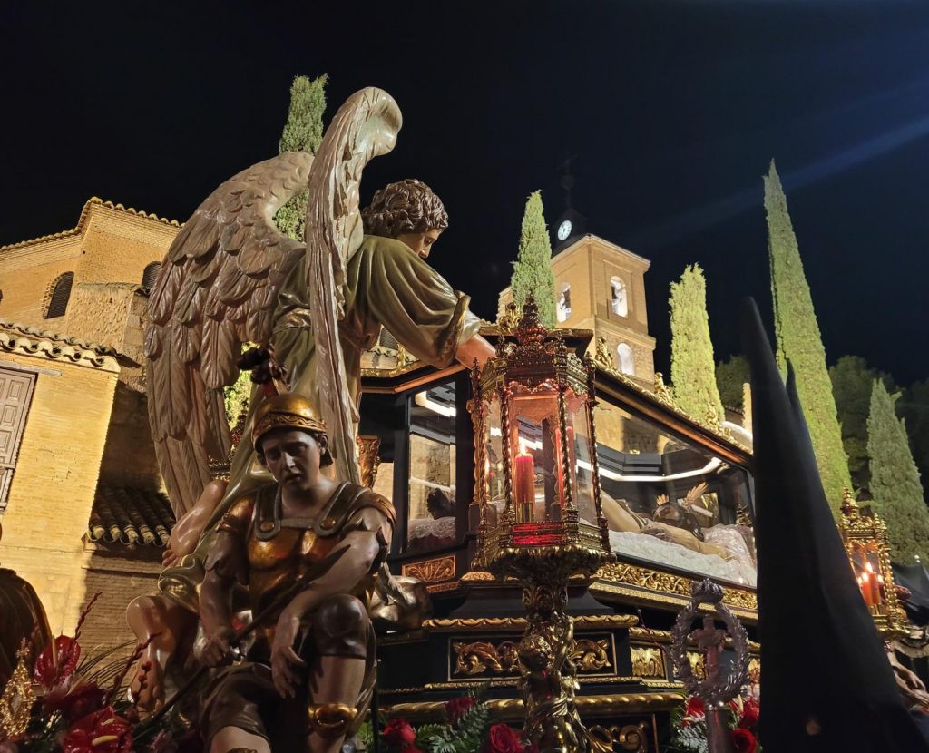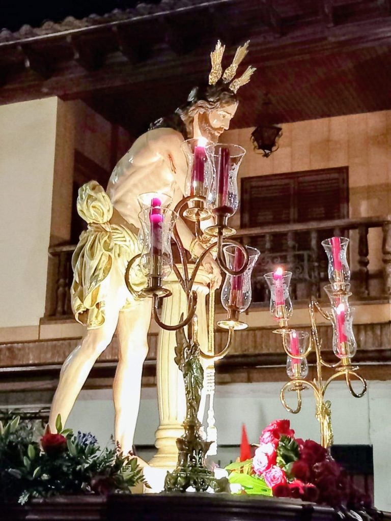Pedro Fco. Sánchez – Valdepeñas Pozo, nos obliga al silencio ante la salida del Crucificado en posición horizontal, portado a hombros, precediendo a María Desolada, Procesión del Silencio, protagonista dicho silencio en señal de recogimiento público ante la predicación de los Siete Dolores de la Virgen, en ambiente de respeto y meditación.